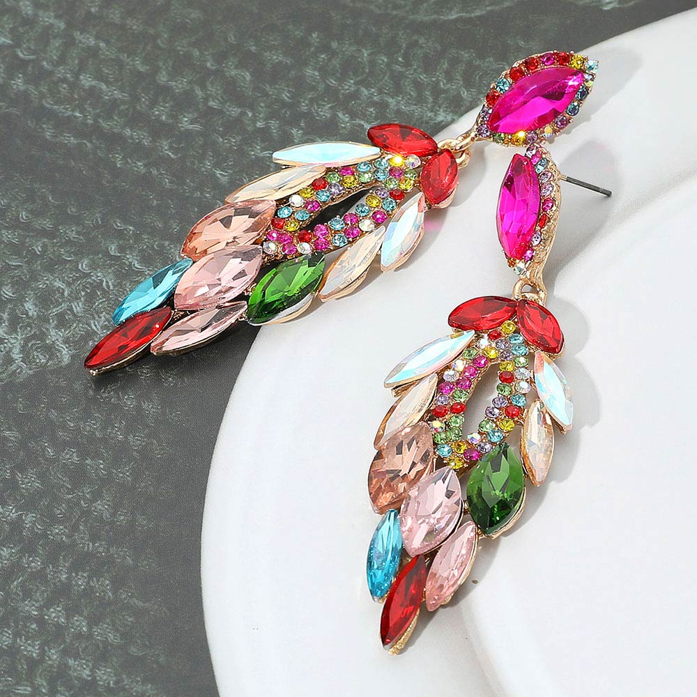 • Add a radiant touch to your look with these leaf cluster drop earrings, featuring shimmering crystals arranged in an elegant cascading design. Perfect for weddings, parties, or evening wear, these statement earrings offer a dazzling blend of sophistication and timeless beauty.