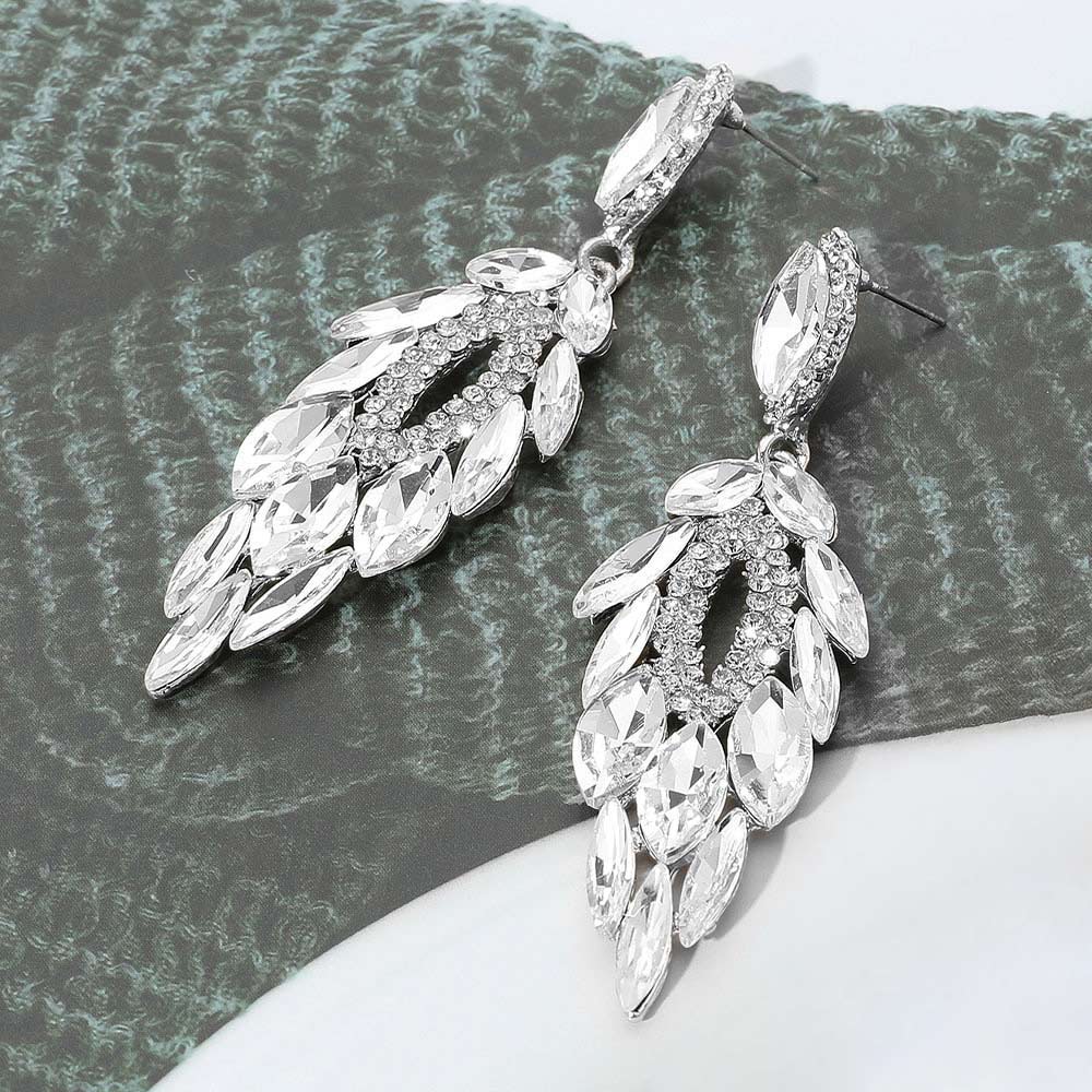 Marquise Stone Cluster Embellished Dangle Evening Earrings