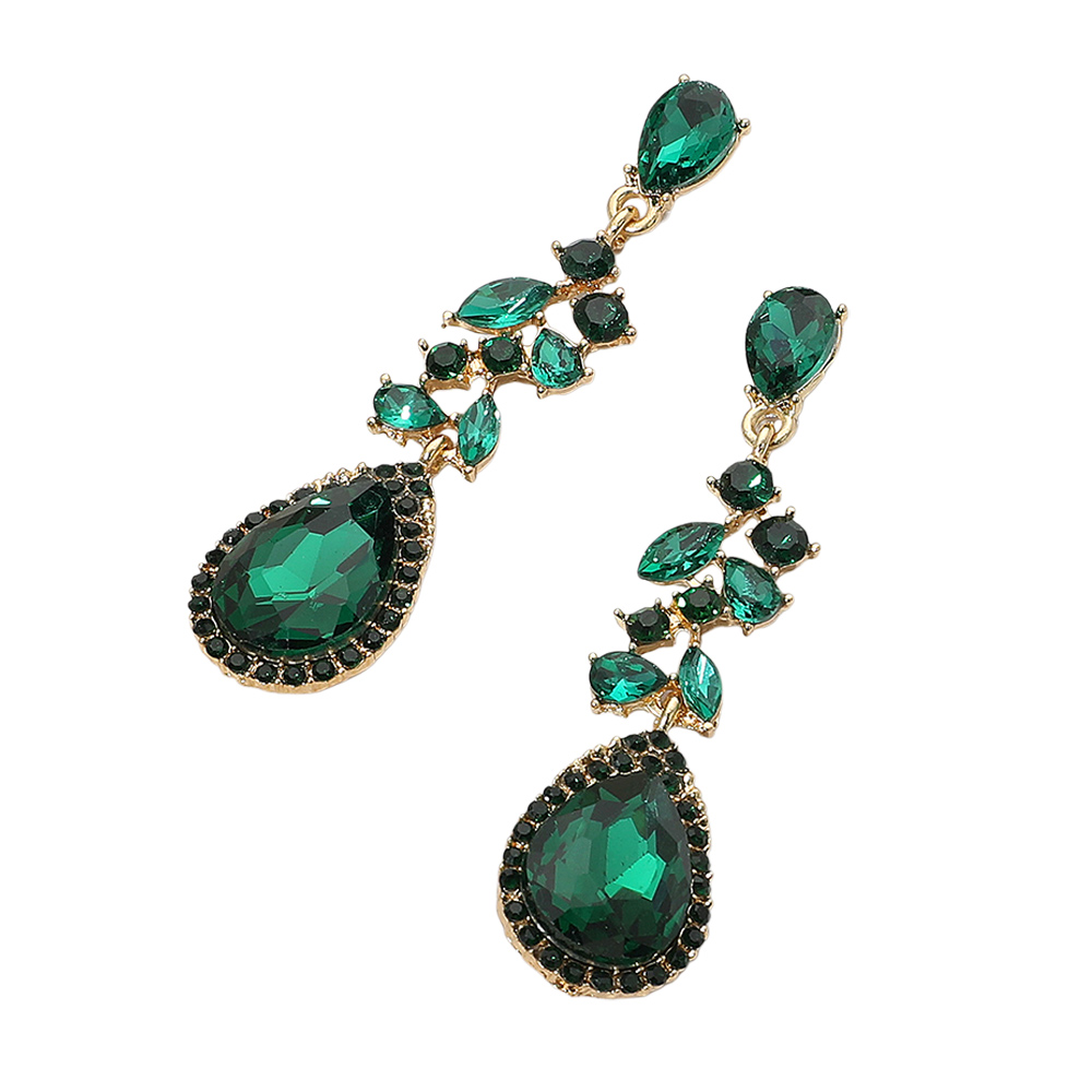 Marquise Stone Cluster Embellished Teardrop Stone Tip Dangle Drop Evening Earrings