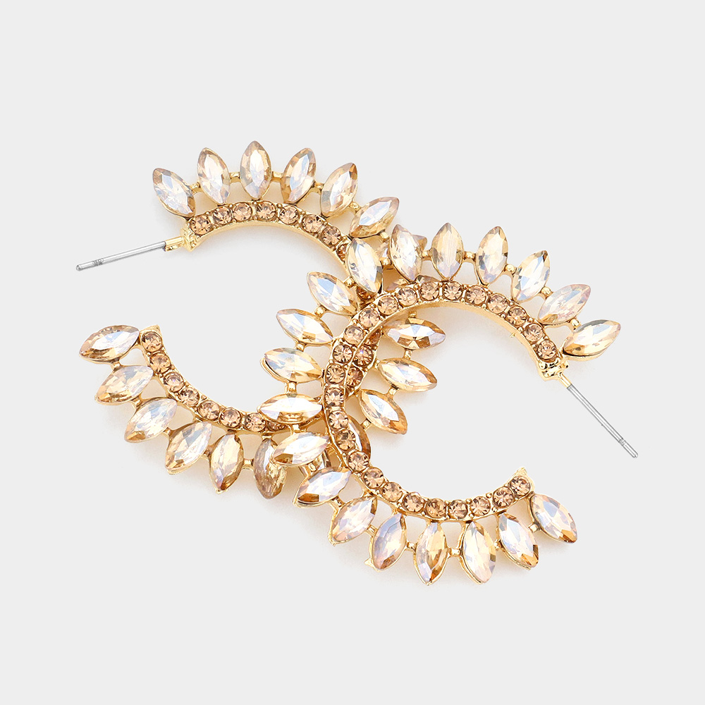 Marquise Stone Cluster Half Hoop Evening Earrings