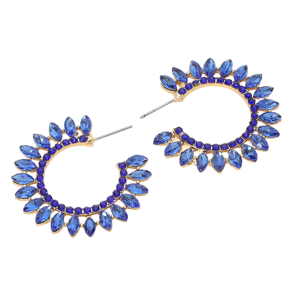• These crystal leaf hoop statement earrings feature a bold open-hoop silhouette accented with marquise-shaped stones arranged in a radiant leaf pattern. Designed to add sparkle and dimension, they are perfect for parties, special occasions, and elevated everyday styling. Lightweight yet eye-catching, they deliver modern elegance with standout appeal.