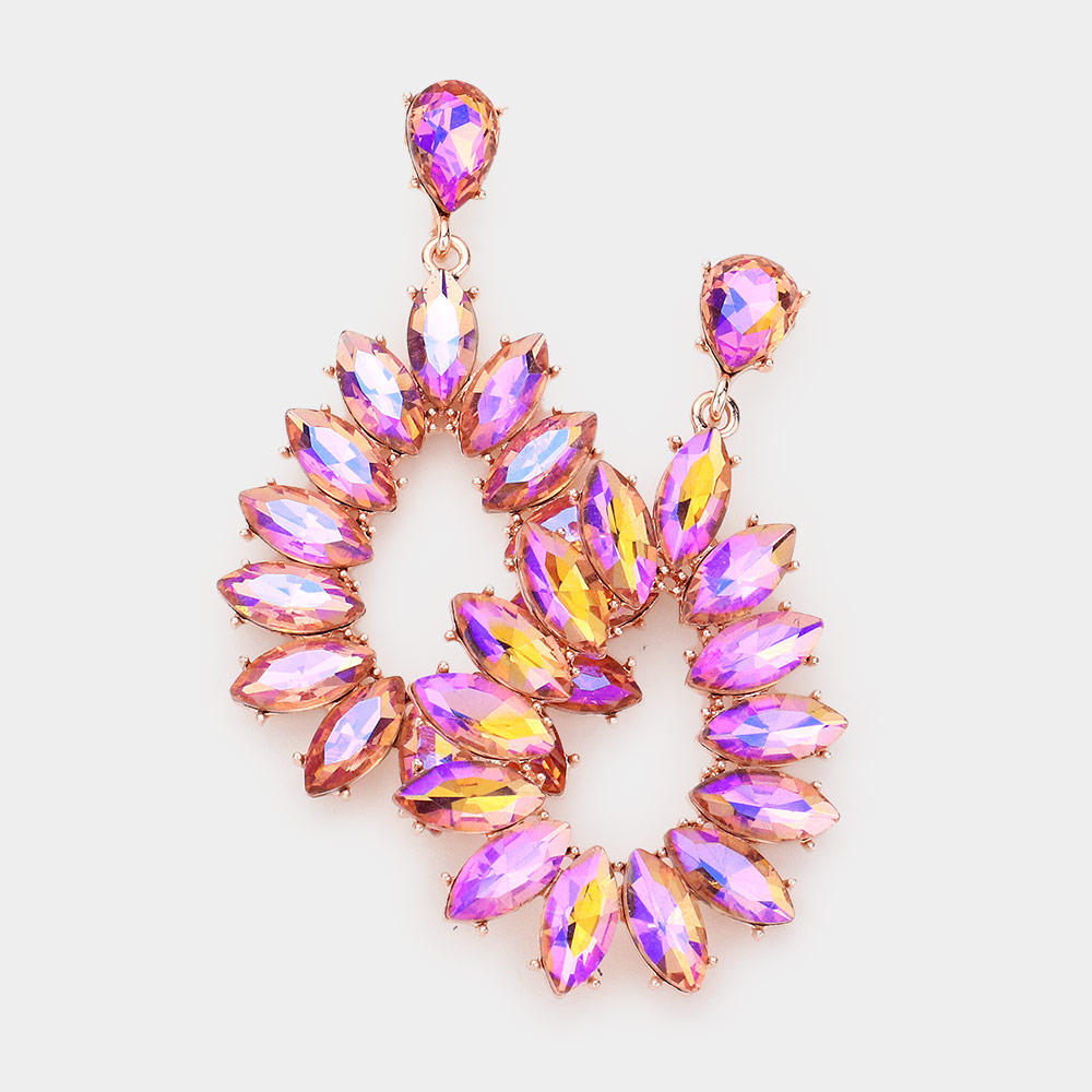 Marquise Stone Cluster Open Teardrop Dangle Evening Earrings