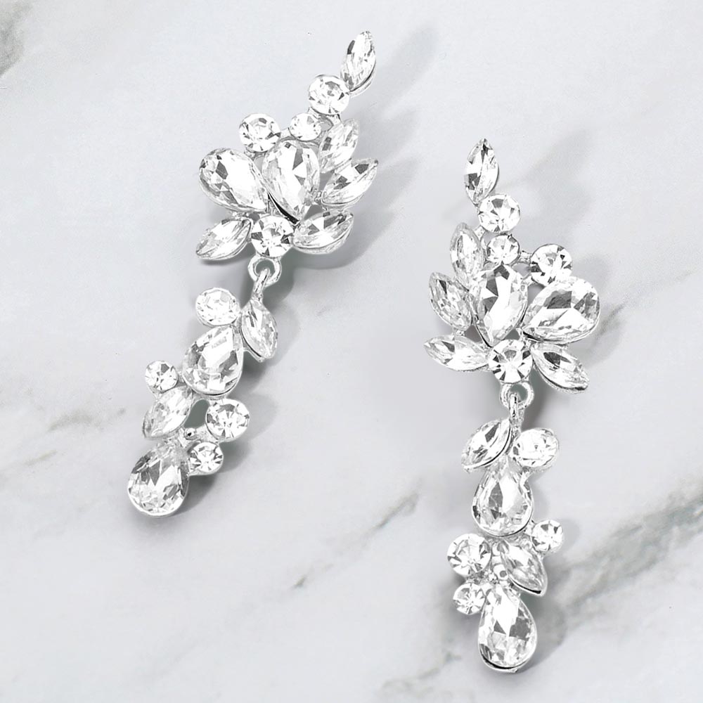 Floral Teardrop CZ Stone Cluster Link Drop Evening Earrings