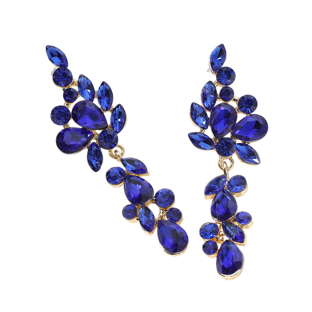 Multi Stone Cluster Vine Dangle Evening Earrings