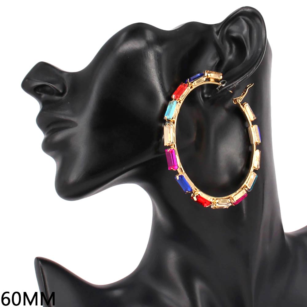 Oversized Glass Stone Evening Hoop Earrings
