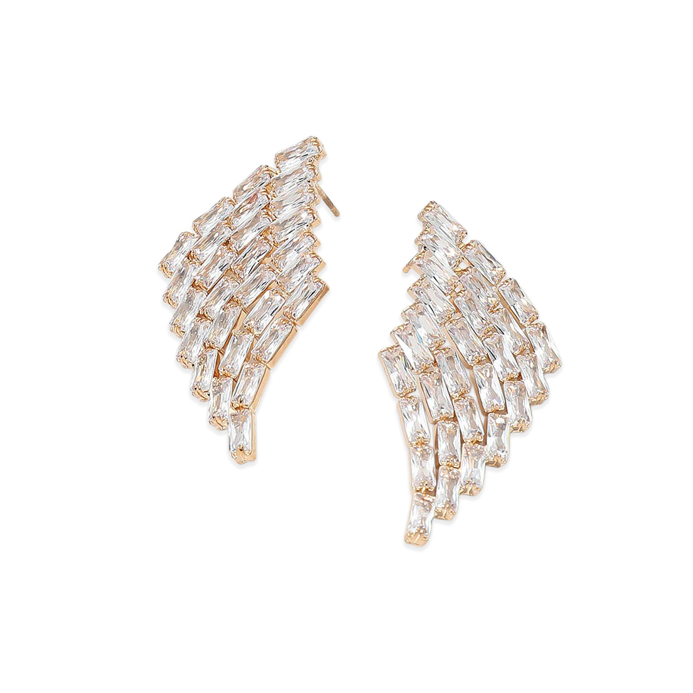 • Bold wing-inspired stud earrings featuring a layered, angular silhouette that delivers high-impact sparkle and modern edge. Designed to elevate evening outfits, special occasions, and fashion-forward collections, these statement studs offer dramatic shine with a sculptural look that stands out in boutiques, events, and trend-driven displays.
