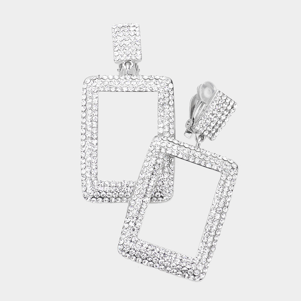 Rhinestone Embellished Open Rectangle Dangle Evening Earrings