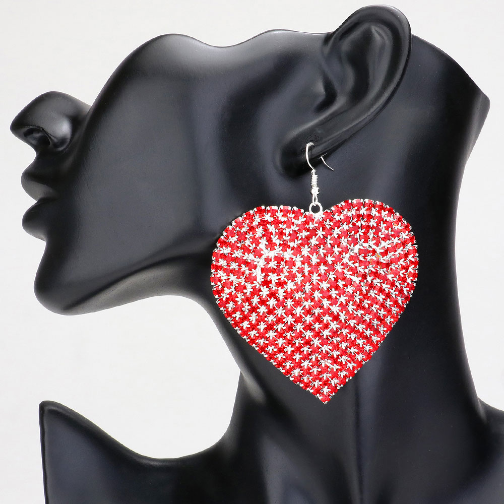 Rhinestone Heart Dangle Evening Earrings
