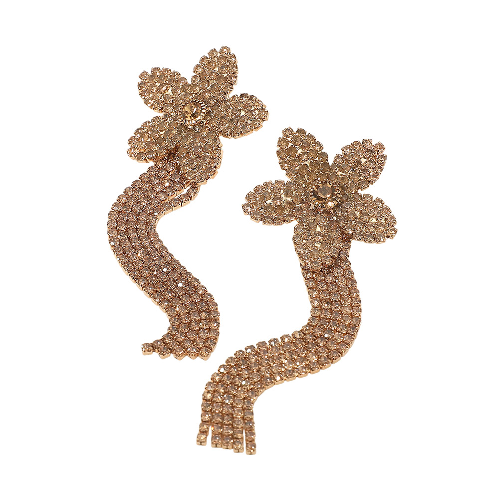 Rhinestone Paved Flower Fringe Evening Earrings
