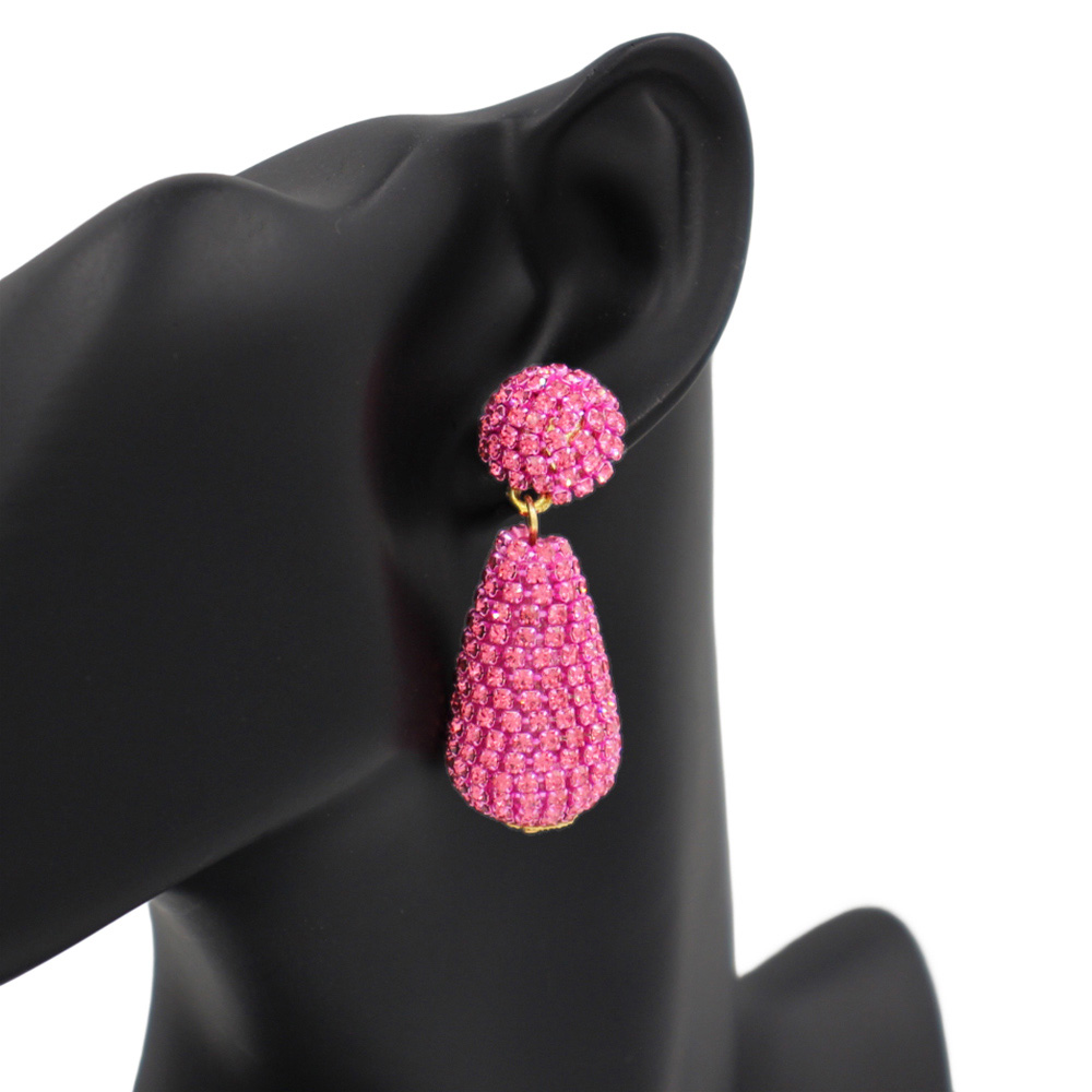 • Elegant teardrop crystal ball earrings with dazzling pave detailing. Designed to catch the light, these statement drop earrings are perfect for evening wear, weddings, or parties, adding sophistication and sparkle to any outfit with their bold and glamorous design.