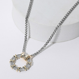 -U- Gold Dipped Metal Initial Monogram Rhinestone Oval Link Pendant Necklace