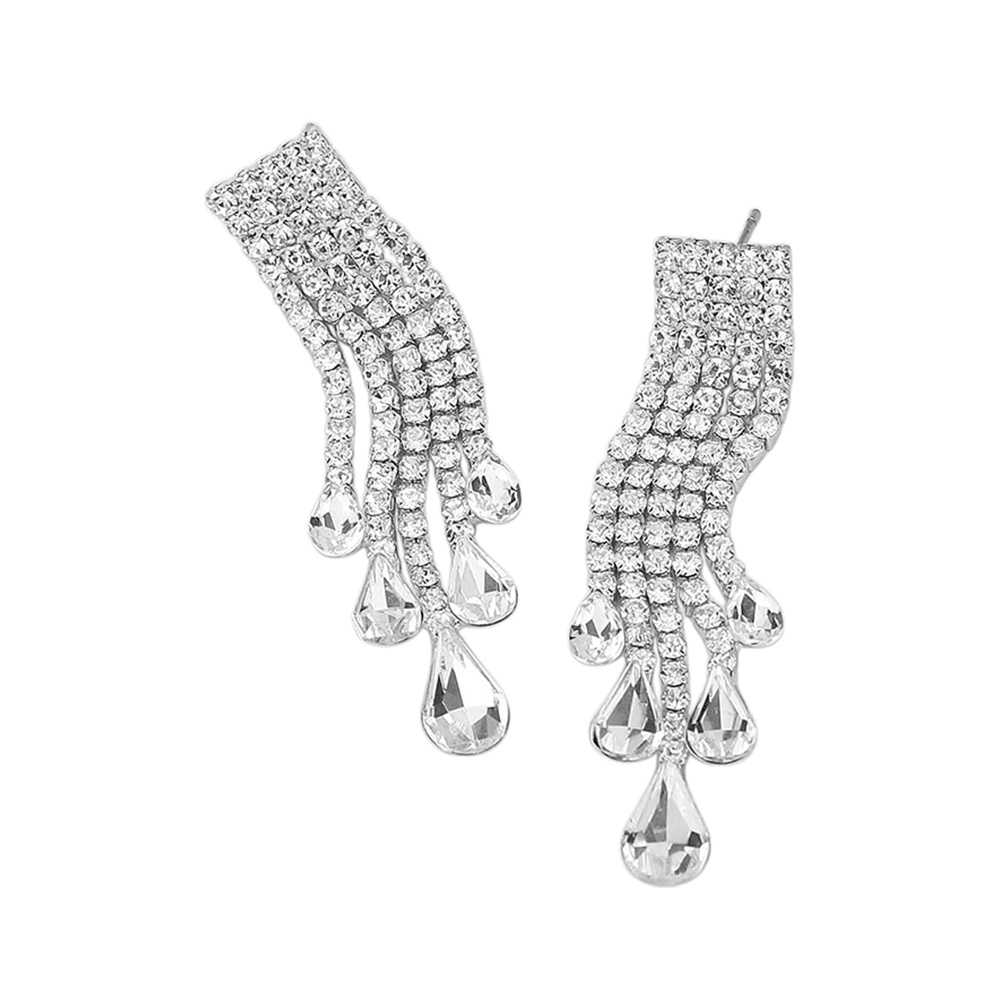 Details • Size : 0.6" X 2.25" • Post Back • Stunning teardrop rhinestone dangle earrings designed with cascading strands for maximum sparkle. Perfect for weddings, evening parties, and formal occasions, these earrings bring elegance and glamour. A chic statement accessory that adds radiant shine and sophistication to any outfit with timeless appeal. • Lead and Nickel Compliant • CZ Cubic Zirconia