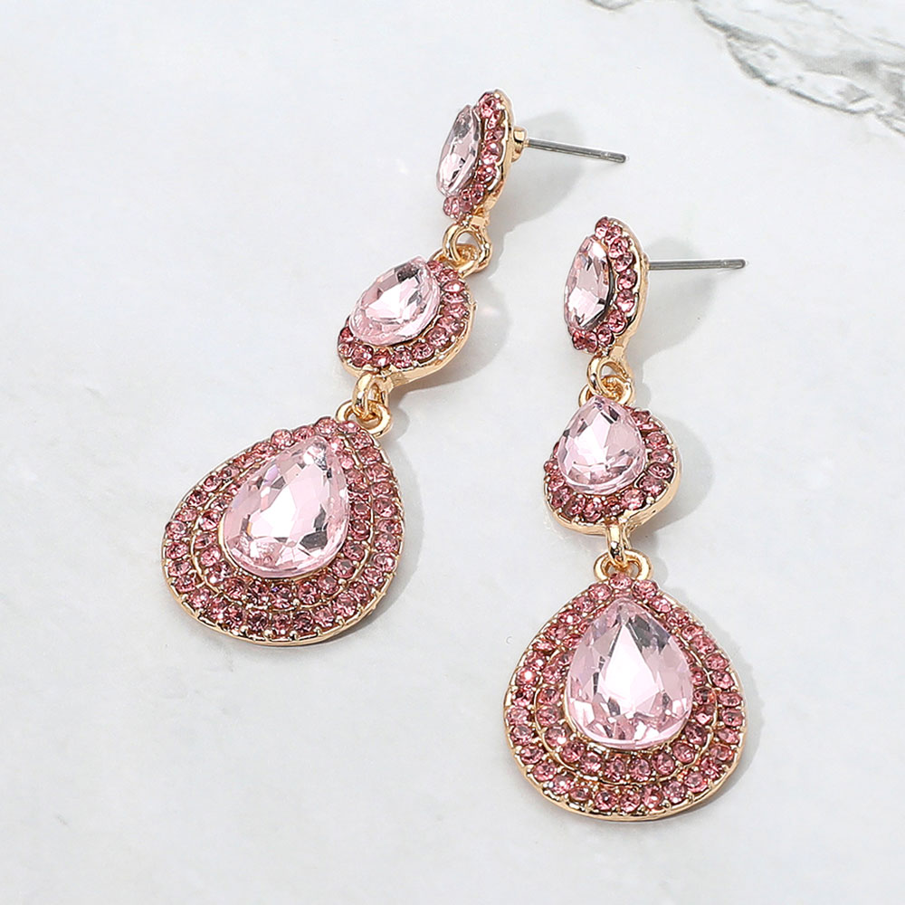 Teardrop Glass Stone Link Drop Dangle Evening Earrings