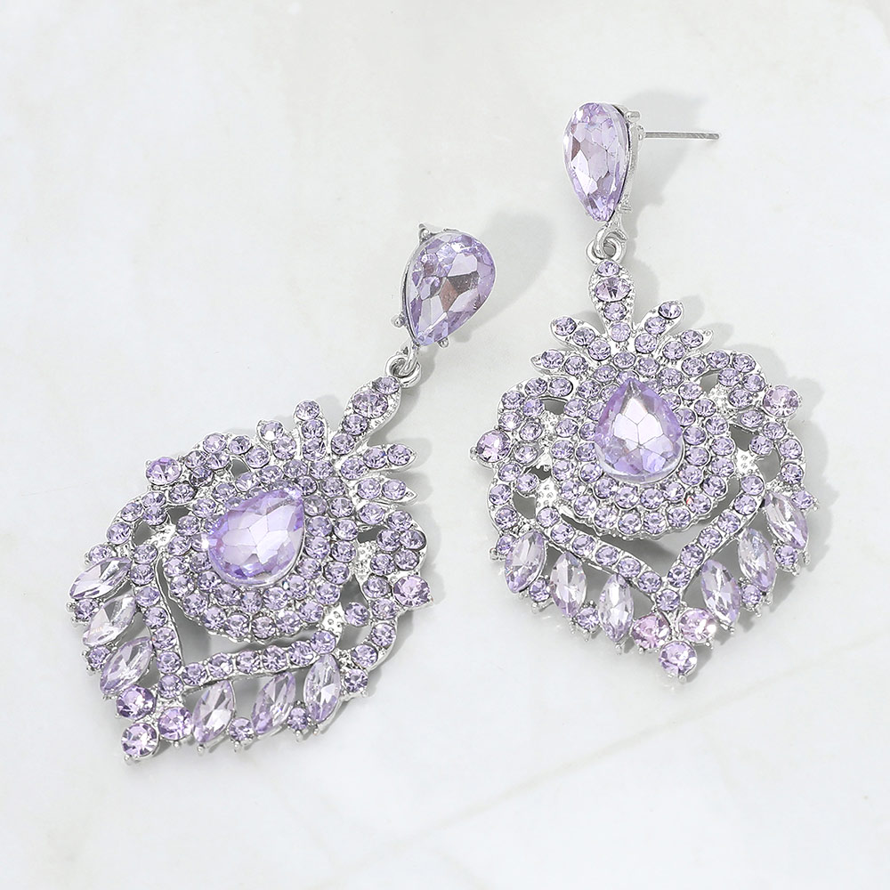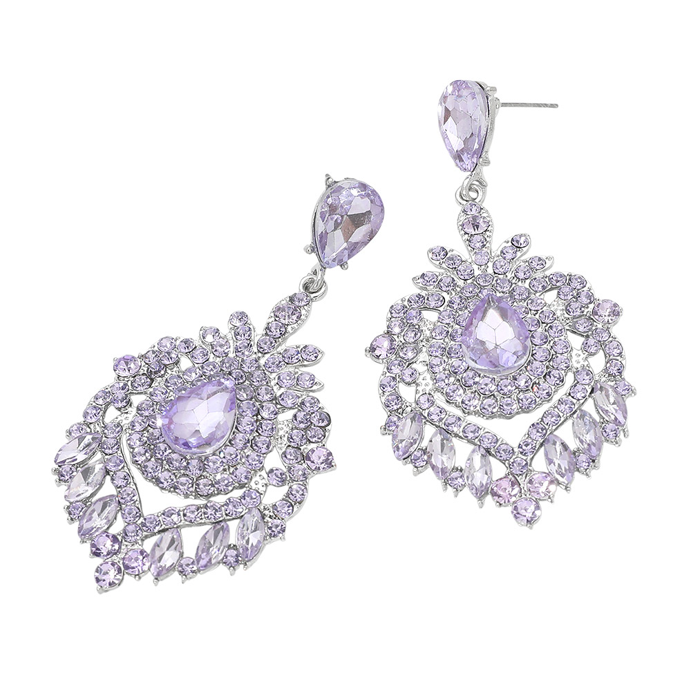 • These statement crystal drop chandelier earrings feature an intricate layered design with faceted accents that catch the light from every angle. Designed to elevate evening looks, weddings, and special events, they add bold sparkle and refined glamour while remaining comfortable to wear. A striking accessory that instantly enhances dresses, formal outfits, or party-ready styles.