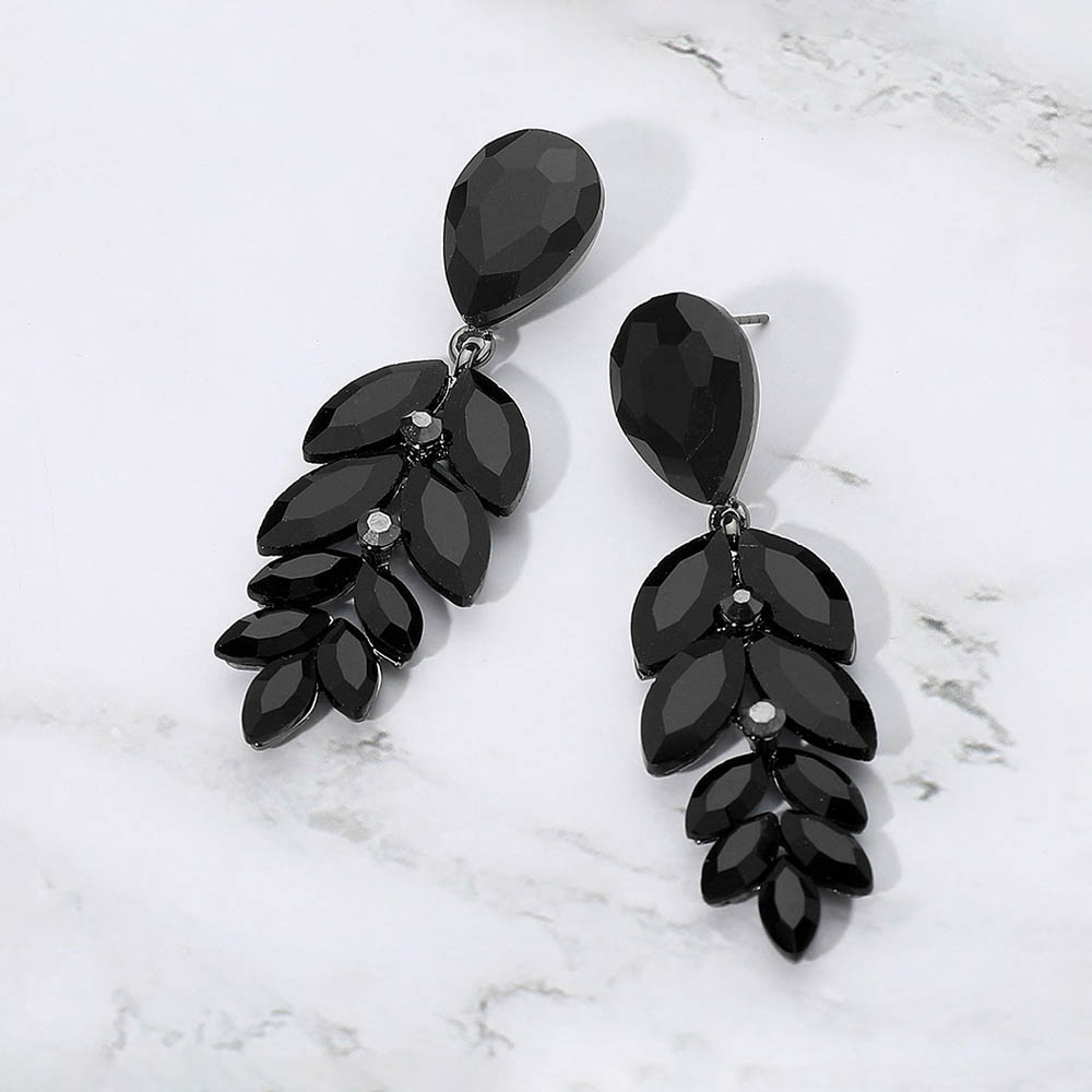• Elegant drop earrings featuring a teardrop top and cascading marquise-cut stones arranged in a leaf-inspired silhouette. Light-catching and refined, these statement earrings add a glamorous finishing touch to evening outfits or special occasions.