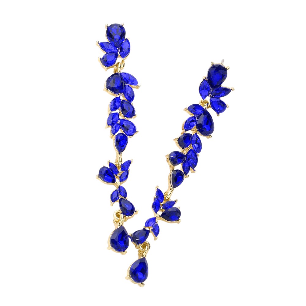 • These iridescent leaf drop earrings feature a cascading design of marquise and teardrop crystals that shimmer beautifully from every angle. Lightweight yet eye-catching, they bring a luminous touch to any outfit, making them ideal for special occasions or elegant evening wear.