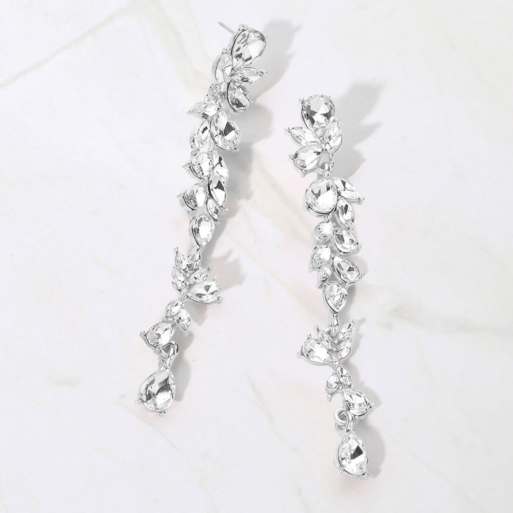 Teardrop Marquise Stone Cluster Embellished Dropdown Evening Earrings Teardrop Marquise Stone Cluster Embellished Dropdown Evening Earrings