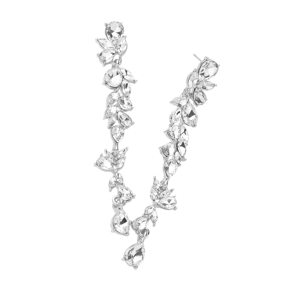 • These iridescent leaf drop earrings feature a cascading design of marquise and teardrop crystals that shimmer beautifully from every angle. Lightweight yet eye-catching, they bring a luminous touch to any outfit, making them ideal for special occasions or elegant evening wear.