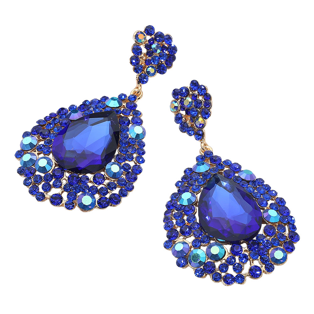 Teardrop Pointed Rhinestone Embellished Dangle Evening Earrings Teardrop Pointed Rhinestone Embellished Dangle Evening Earrings