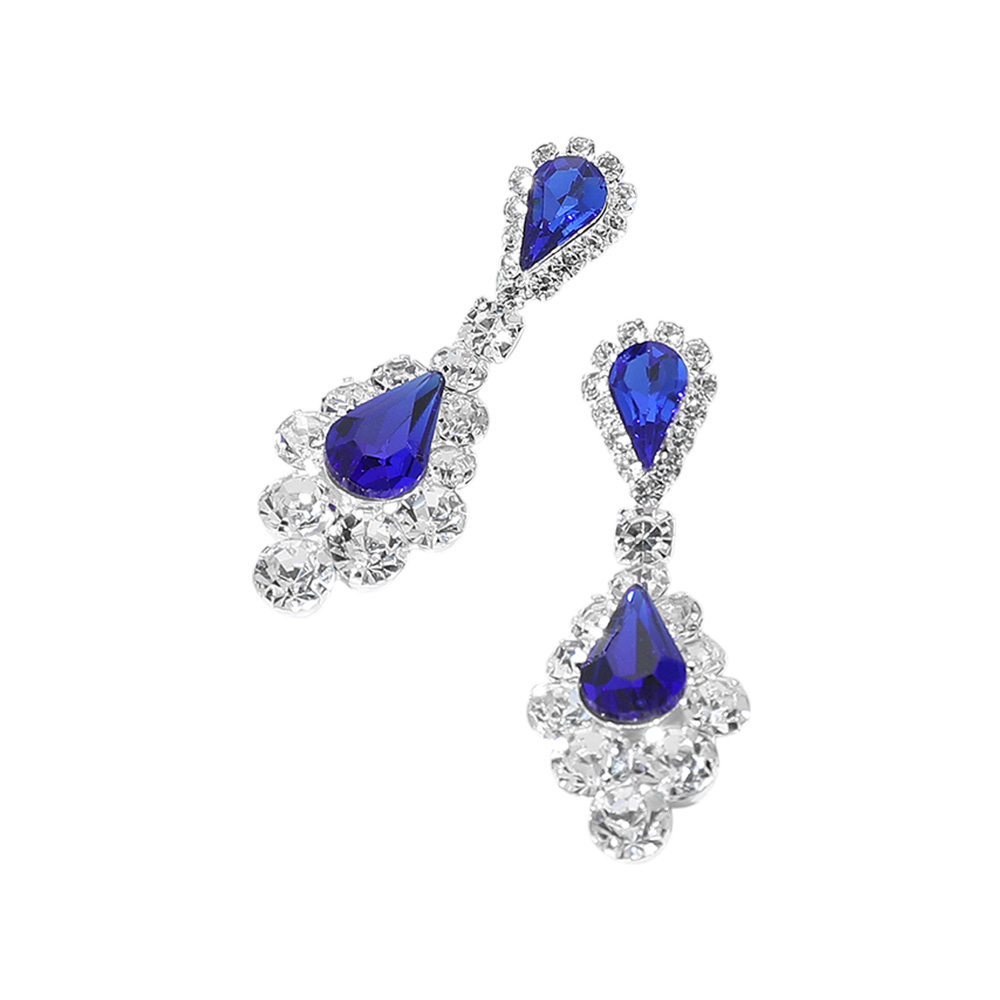 Teardrop Accented Marquise Stone Cluster Evening Earrings