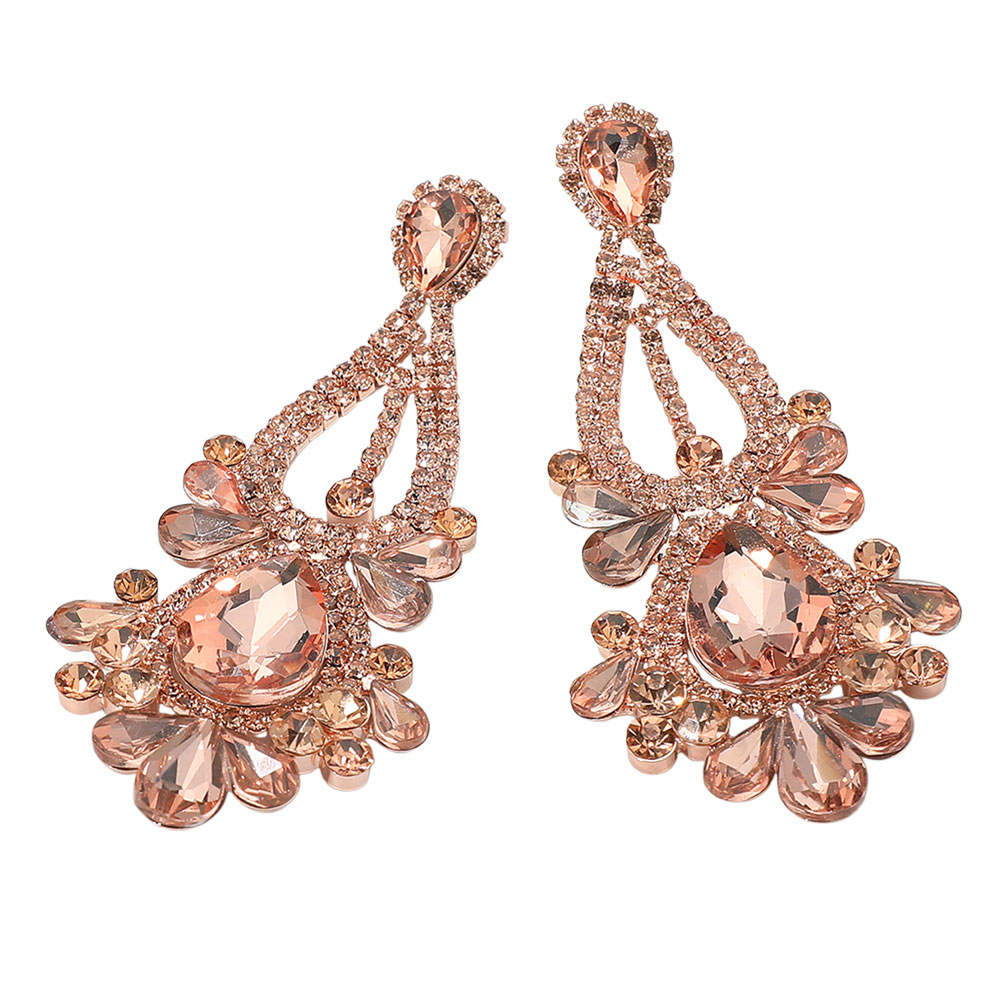 Teardrop Stone Cluster Statement Evening Earrings