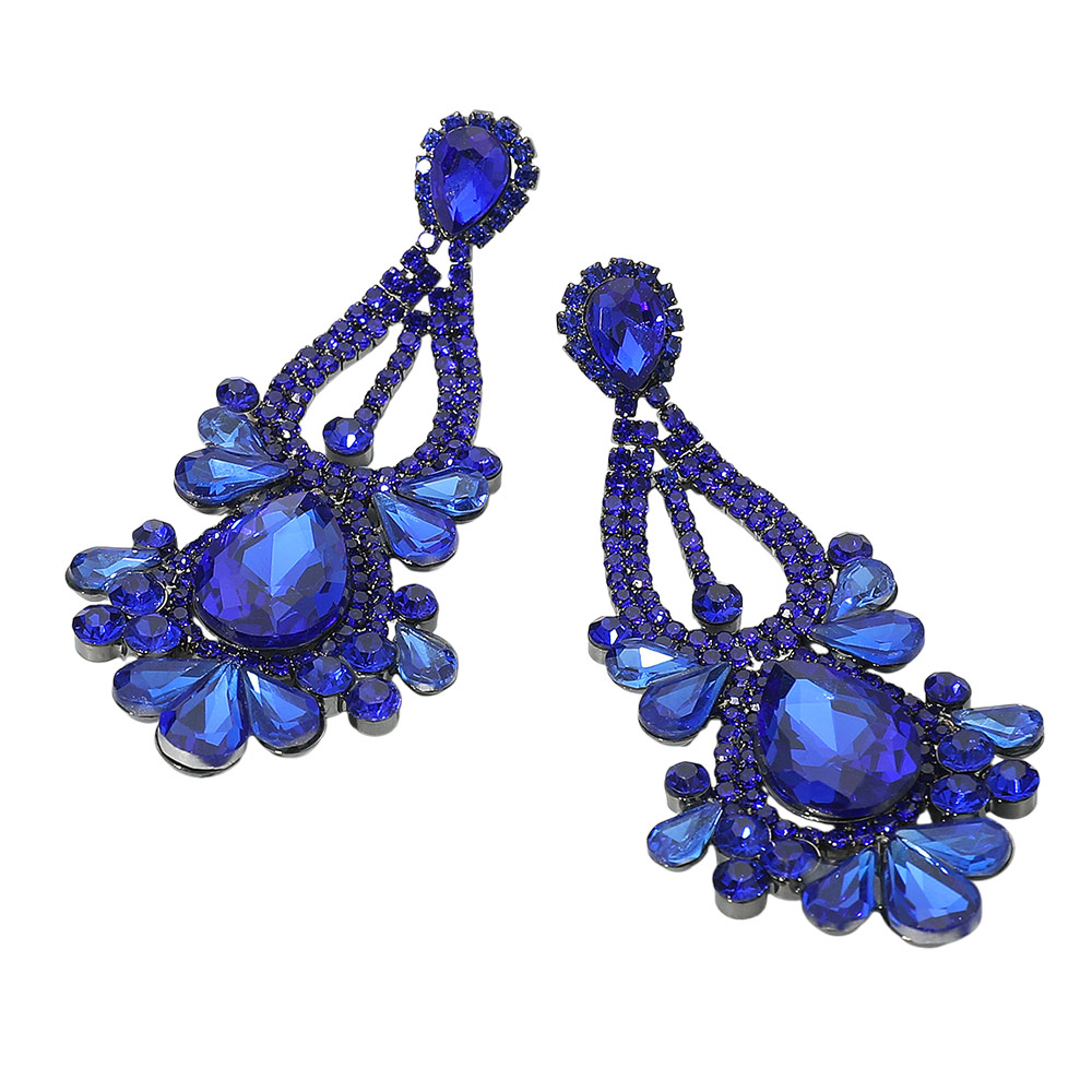 Oversized Pave Glass Teardrop Chandelier Evening Earrings