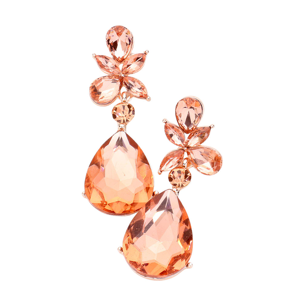 • Make a striking impression with these faceted teardrop statement earrings. Featuring bold, multi-cut stones arranged in a floral-inspired design, they capture light beautifully for a refined yet dramatic finish—perfect for evening wear or elevating any special occasion look.