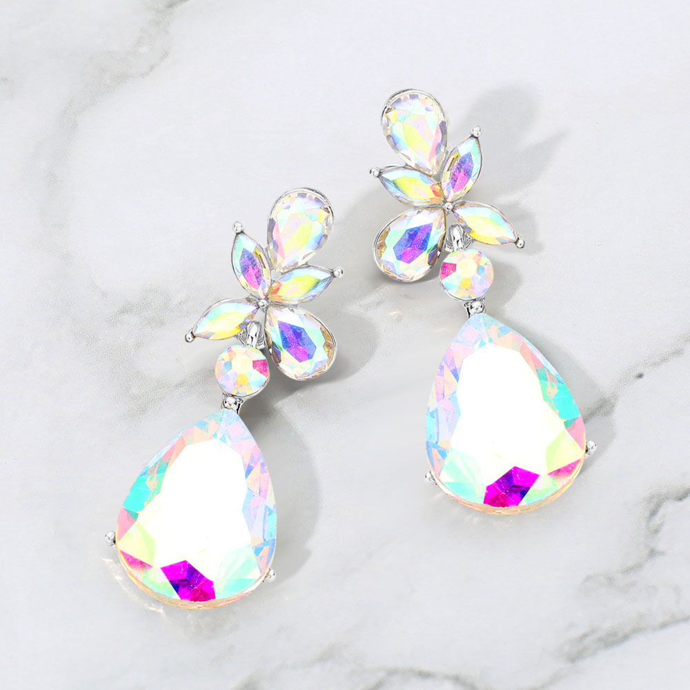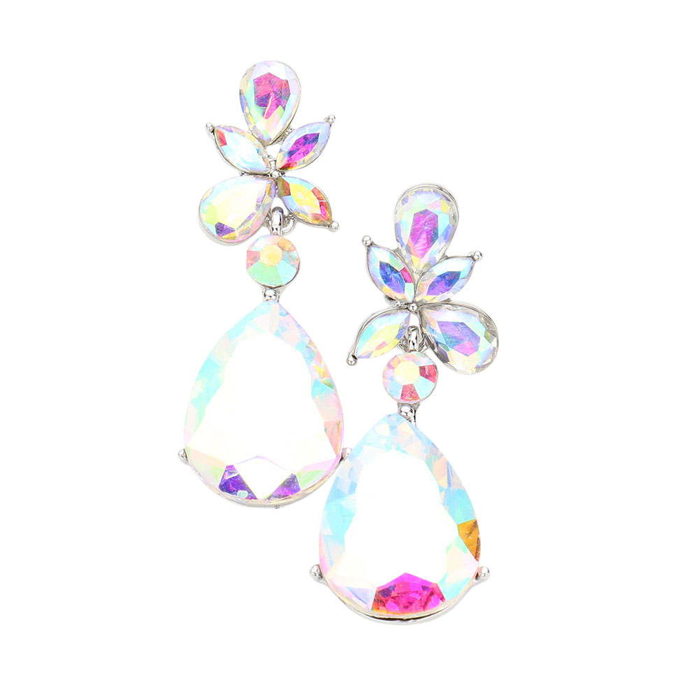 • Make a striking impression with these faceted teardrop statement earrings. Featuring bold, multi-cut stones arranged in a floral-inspired design, they capture light beautifully for a refined yet dramatic finish—perfect for evening wear or elevating any special occasion look.