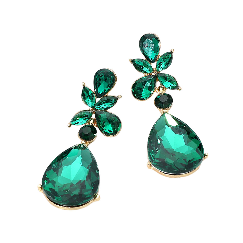 • Make a striking impression with these faceted teardrop statement earrings. Featuring bold, multi-cut stones arranged in a floral-inspired design, they capture light beautifully for a refined yet dramatic finish—perfect for evening wear or elevating any special occasion look.