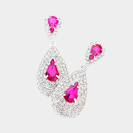 Teardrop Stone Pointed Cluster Dangle Evening Earrings