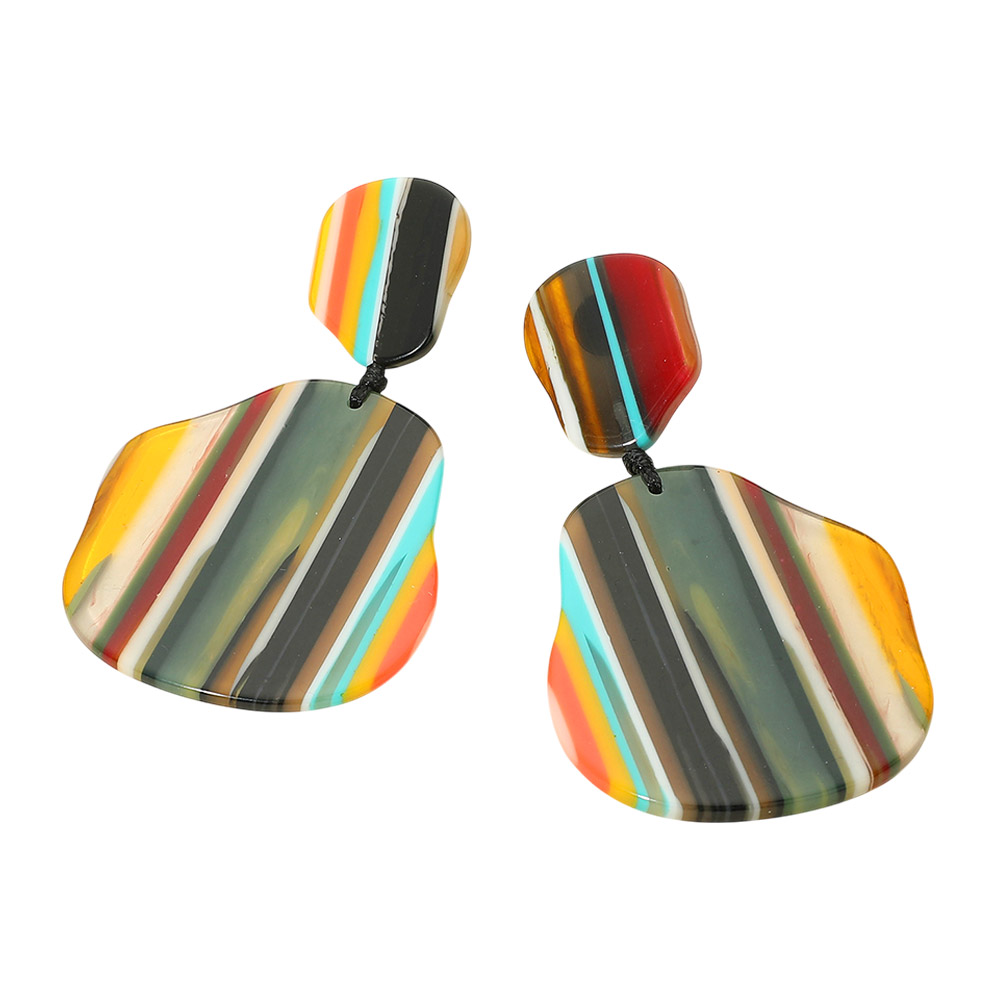 Details • Size : 2" X 2.8" • Post Back • These abstract drop statement earrings feature a bold striped pattern with a sculptural silhouette that adds modern impact to any look. Designed to stand out while remaining lightweight, they are ideal for boutiques seeking trend-driven accessories with artistic flair and everyday wear appeal. • Lead and Nickel Compliant