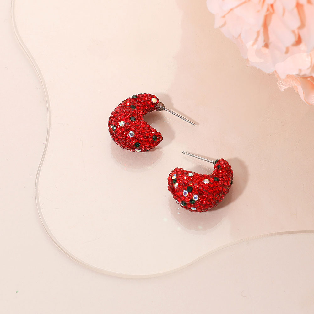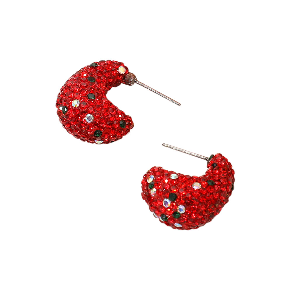 Bling Studded Small Chunky Teardrop Holiday Hoop Earrings