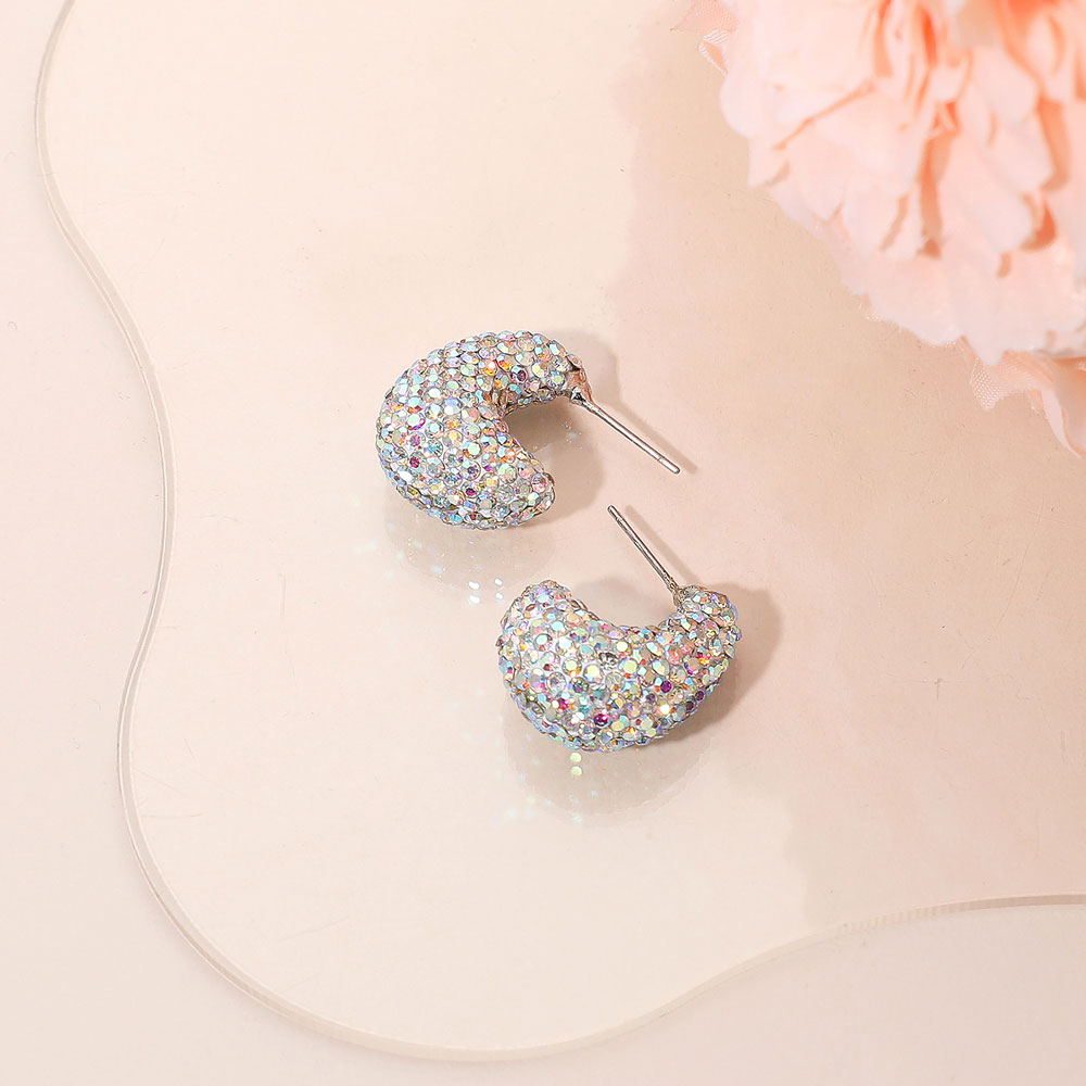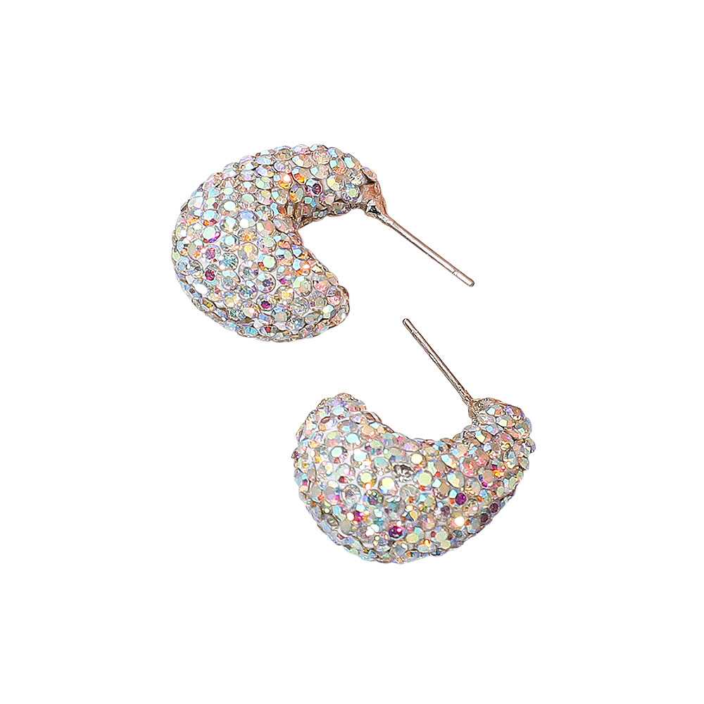 • Compact hoop earrings featuring dazzling rhinestone detailing for a subtle yet striking shine. Perfect for adding a touch of glamour to casual or formal looks. Lightweight and comfortable, these small hoops bring elegance and sophistication to any jewelry collection or outfit.