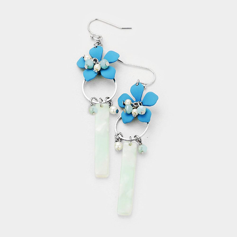 Bloom Flower Celluloid Acetate Rectangle Dangle Earrings