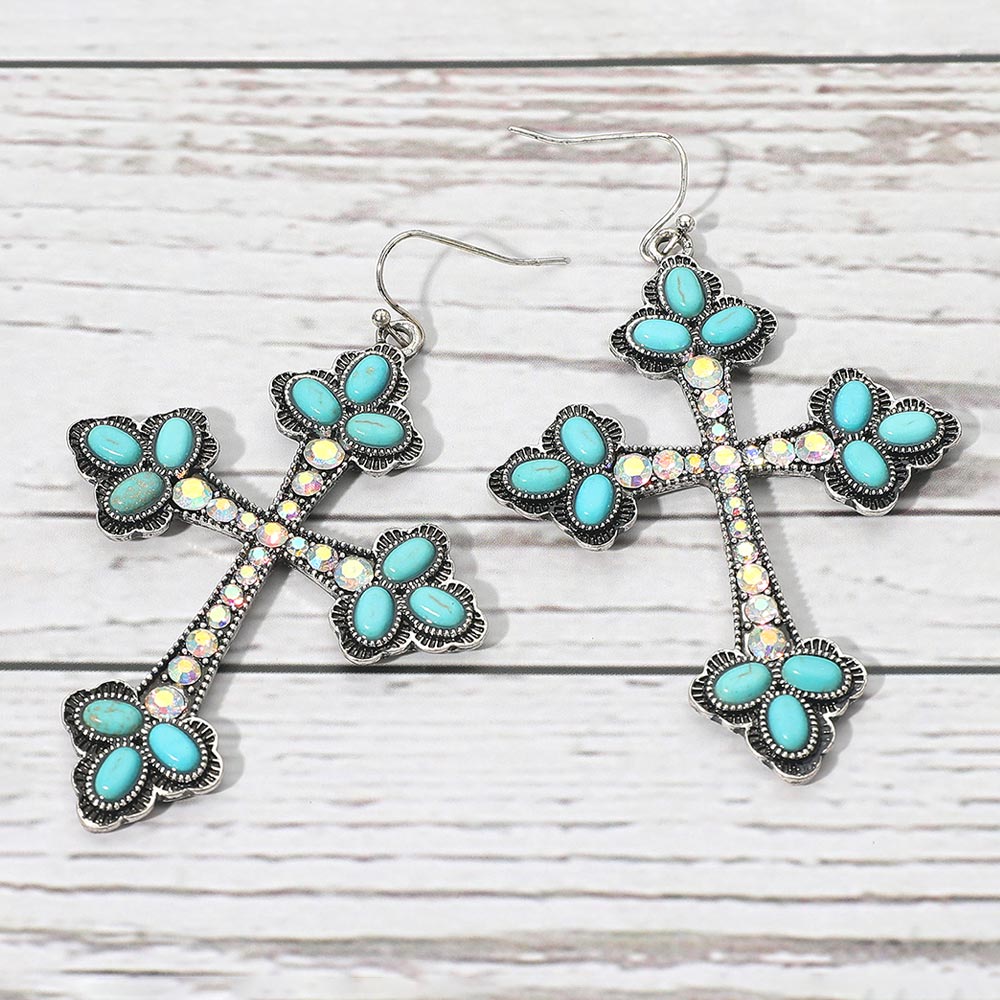 Details • Size : 1.9" X 3" • Fish Hook Back • Bold boho cross drop earrings featuring beaded accent details arranged in a floral-inspired layout, perfect for making a statement. Ideal for adding expressive style to festival outfits, casual looks, or layered accessory combinations with a vintage-inspired touch. • Lead and Nickel Compliant