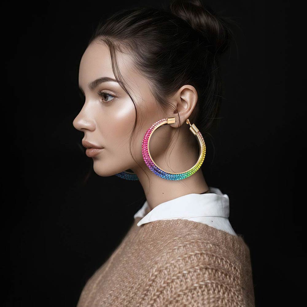 Oversized Bling Studded Hoop Statement Earrings