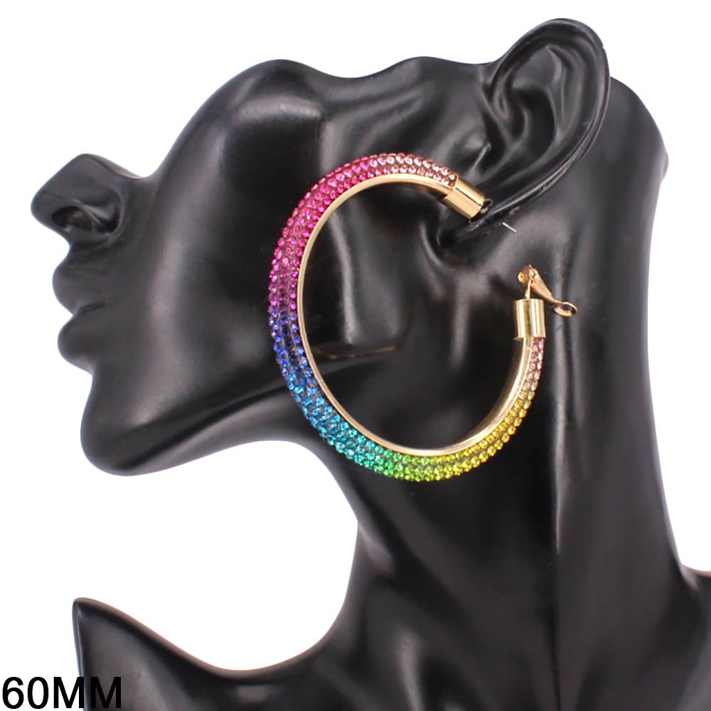 • Statement hoop earrings designed with a sleek curved silhouette and fully embellished surface for maximum shine. The bold 60mm size creates instant impact while remaining lightweight and comfortable for extended wear. Ideal for parties, festivals, night events, and trend-forward jewelry collections.