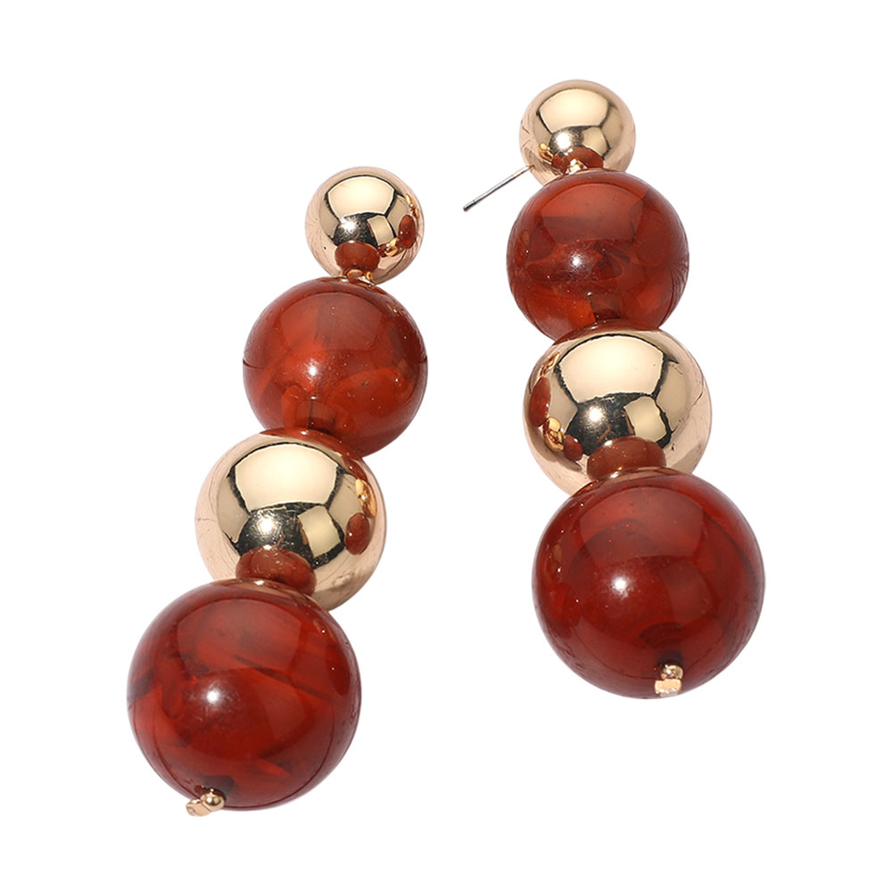 Details • Size : 1.25" X 3.8" • Post Back • Make a statement with these Bold Dual Sphere Drop Earrings featuring alternating glossy and polished spheres. Their modern geometric silhouette adds depth and balance, perfect for elevating any outfit—from casual chic to formal sophistication. A must-have for standout elegance. • Lead and Nickel Compliant