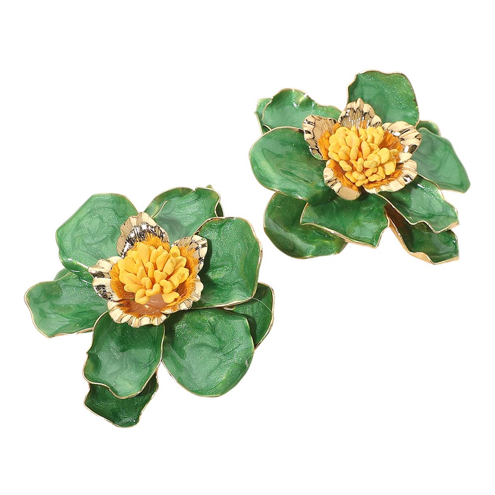 Bold Enamel Flower Statement Earrings