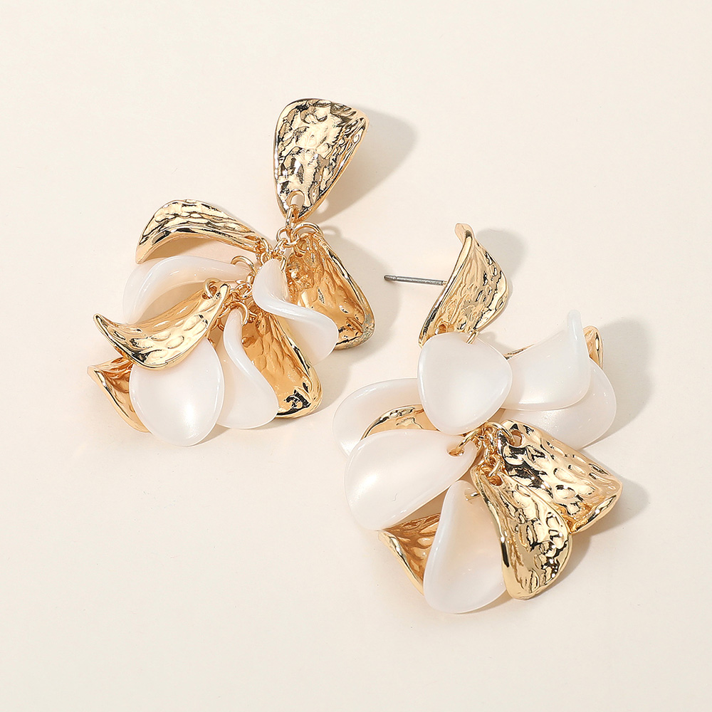 Details • Size : 1.4" X 2.6" • Post Back • Make a statement with these bold petal drop earrings featuring a textured floral-inspired design. Perfect for adding artistic flair and sophistication to party looks, evening outfits, or special occasions, these earrings highlight your unique style with elegance and charm. • Lead and Nickel Compliant
