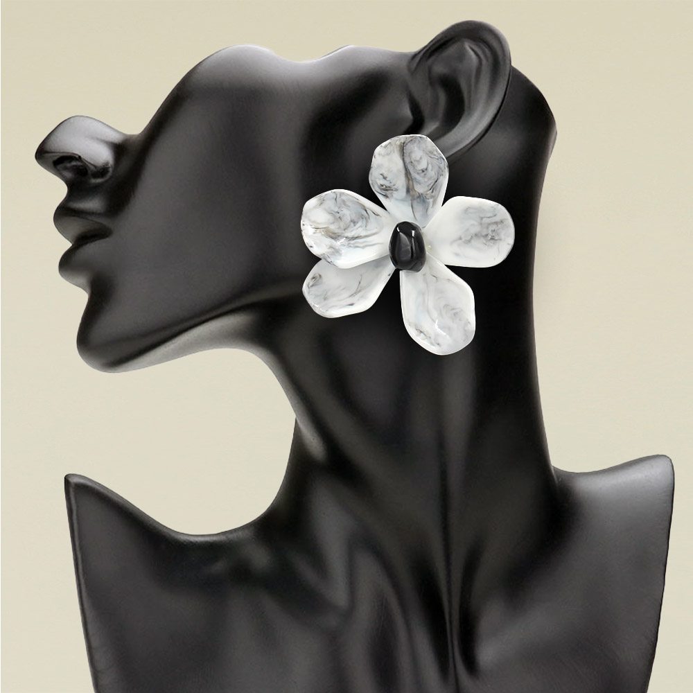 • Bold statement earrings featuring large petal-shaped floral design with glossy finish. Perfect for elevating any outfit, these eye-catching earrings add a touch of artistic flair and elegance, ideal for special occasions, photoshoots, or standout fashion looks.