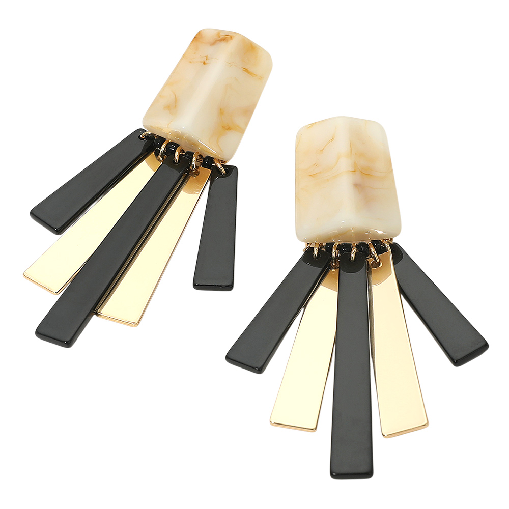 Bold Geometric Resin Metal Bar Fringe Statement Earrings