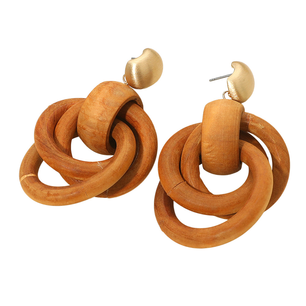 Bold Wooden Interlocking Knot Dangle Earrings Bold Wooden Interlocking Knot Dangle Earrings