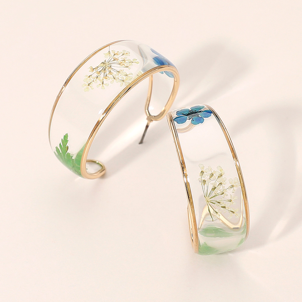 Details • Size : 1.3" X 1.3" X 0.6" • Post Back • Elegant hoop earrings featuring a smooth, contemporary silhouette with a nature-inspired design captured within clear contours. Lightweight and comfortable for everyday wear, they add a refined artistic touch to casual outfits while complementing dressier looks for evenings, events, or special occasions. • Lead and Nickel Compliant