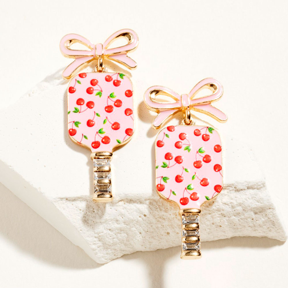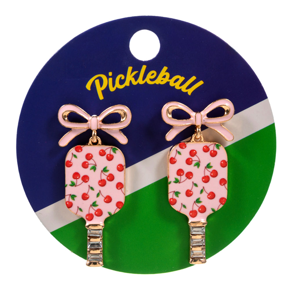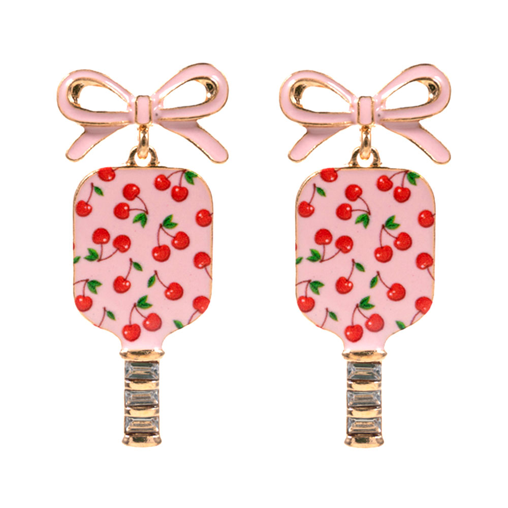 Bow Cherry Pickleball Paddle Dangle Earrings Bow Cherry Pickleball Paddle Dangle Earrings Bow Cherry Pickleball Paddle Dangle Earrings