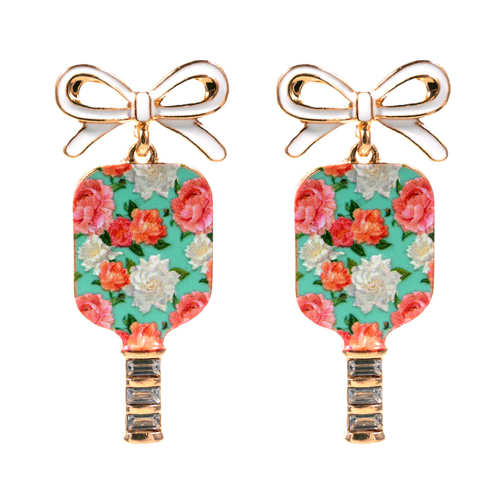 Bow Floral Pickleball Paddle Dangle Earrings Bow Floral Pickleball Paddle Dangle Earrings Bow Floral Pickleball Paddle Dangle Earrings