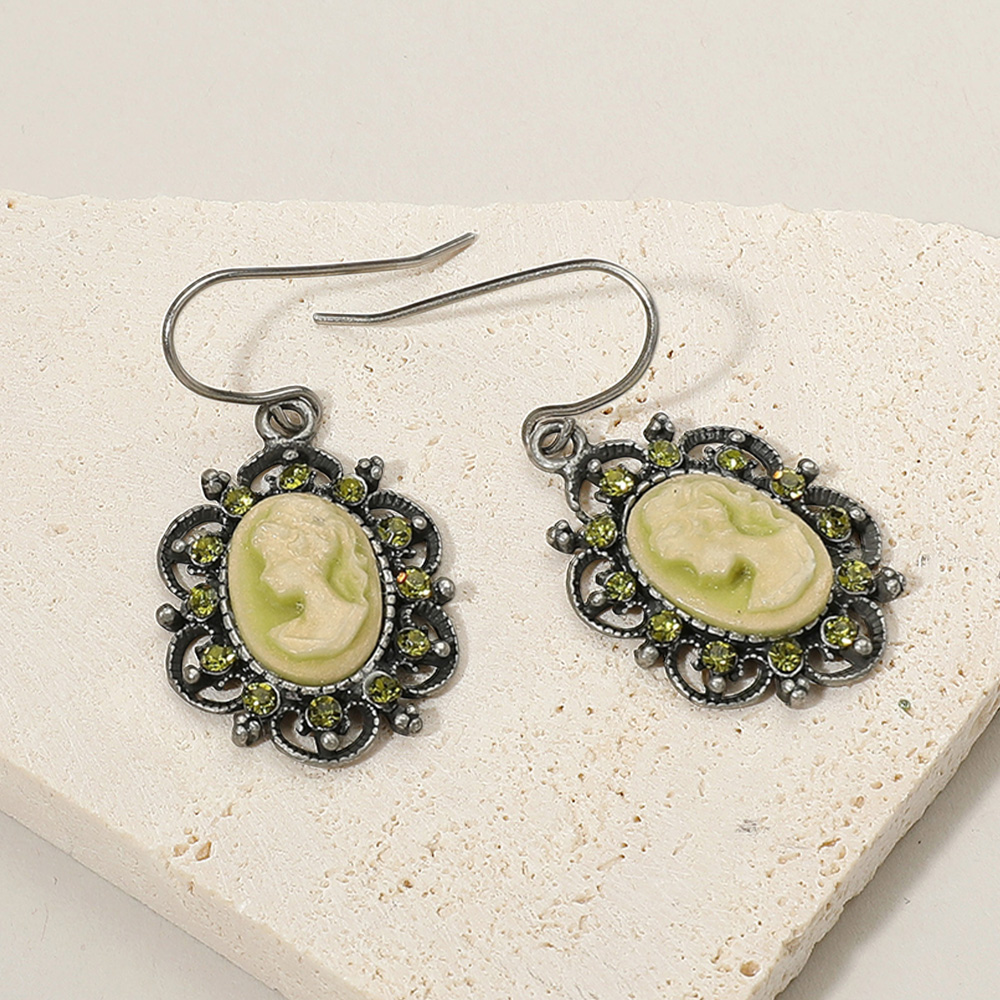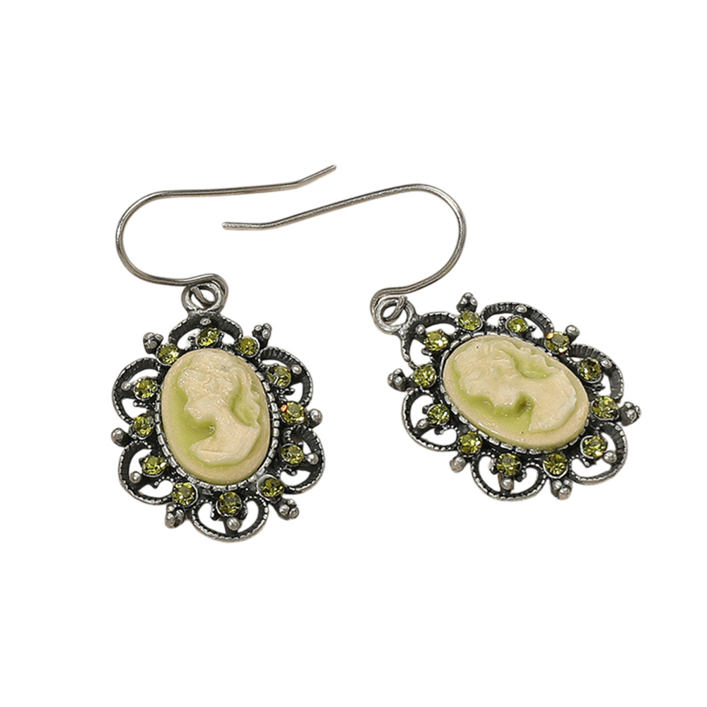 Crystal Accent Vintage Cameo Drop Dangle Earrings