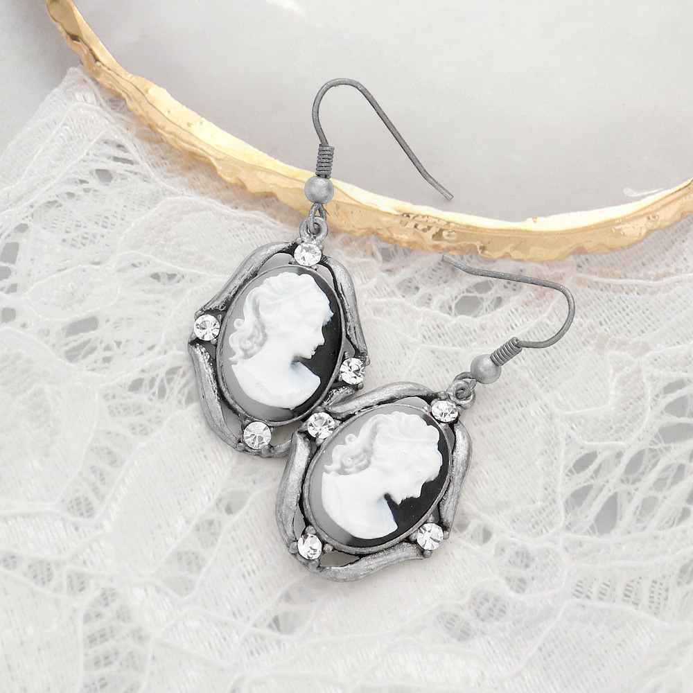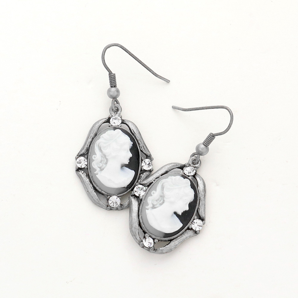 Crystal Accent Vintage Cameo Drop Dangle Earrings