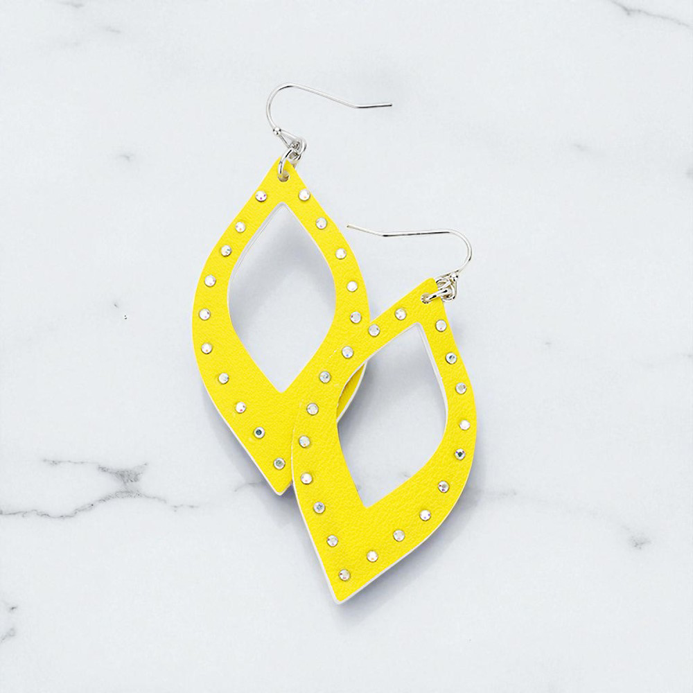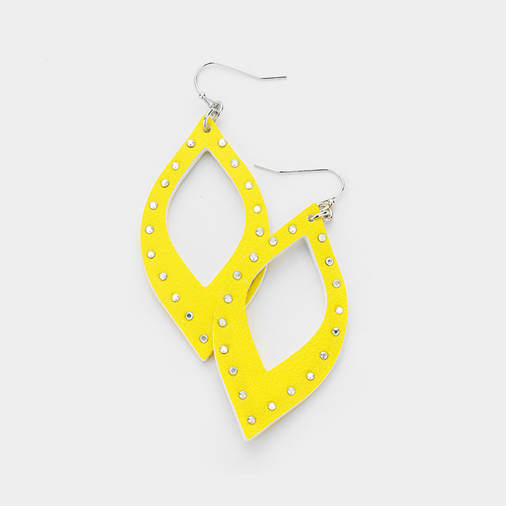 Crystal Embellished Cut Out Leather Teardrop Earrings