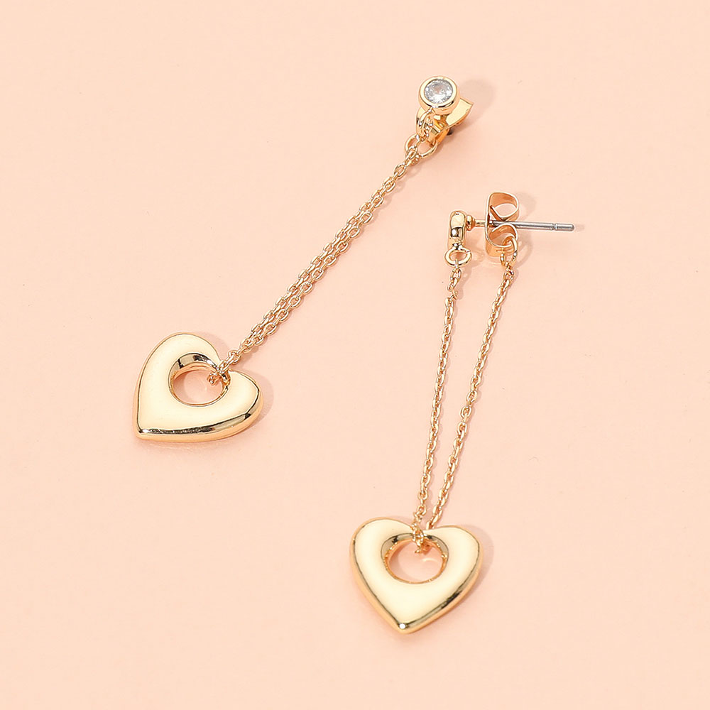 Details • Size : 0.5" X 2.1" • Post Back • Refined heart drop earrings with a delicate chained design that creates gentle movement and subtle sparkle. Perfect for adding romantic elegance to everyday outfits or enhancing evening looks, offering a lightweight, graceful accent that complements any jewelry collection beautifully. • Lead and Nickel Compliant